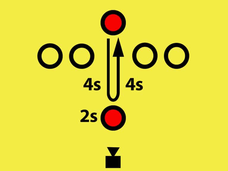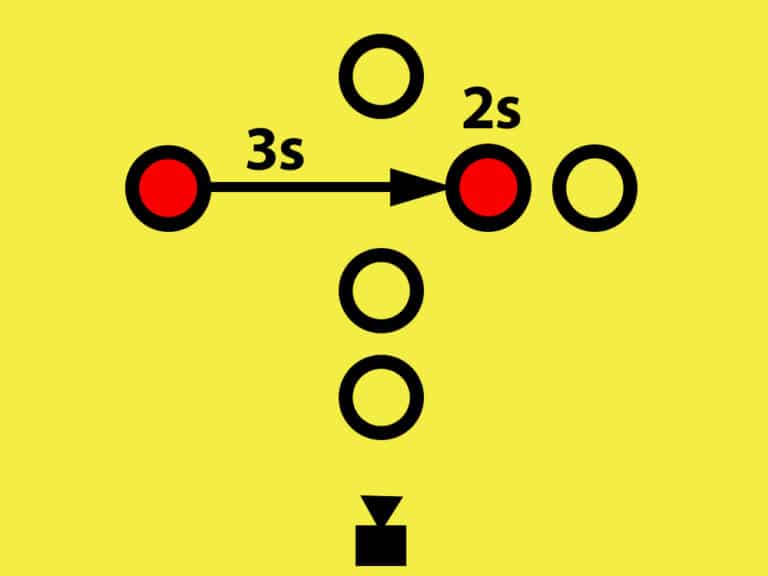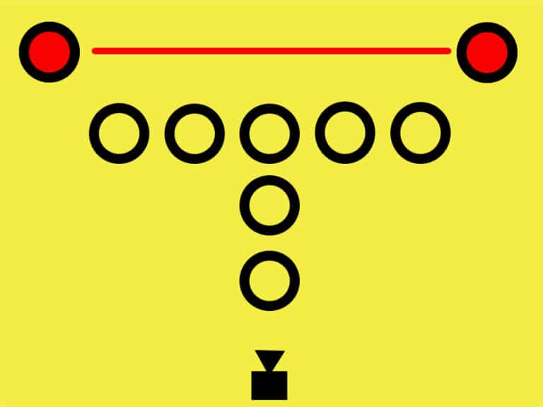 The yellow inset graphic mirrors what the operator sees and highlights where guests should stand. Most moves use the center position, but any spot can be quickly marked with the built-in laser pointer before or during an event.