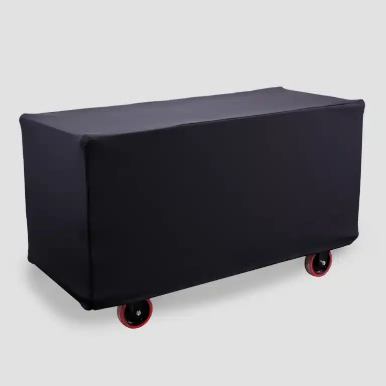 Black spandex cover converts the road case into a convenient table for props, purses and drinks; avoids the need to store the road case after setup. Conveniently stores in optional internal road case bag.