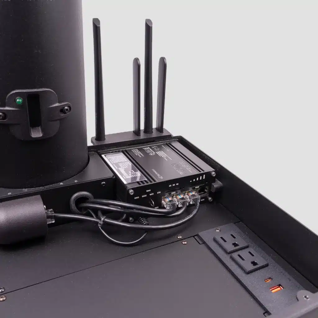 - Internal router provides cellular*/WIFI/LAN internet and a hardwired network for iPhone/iPads