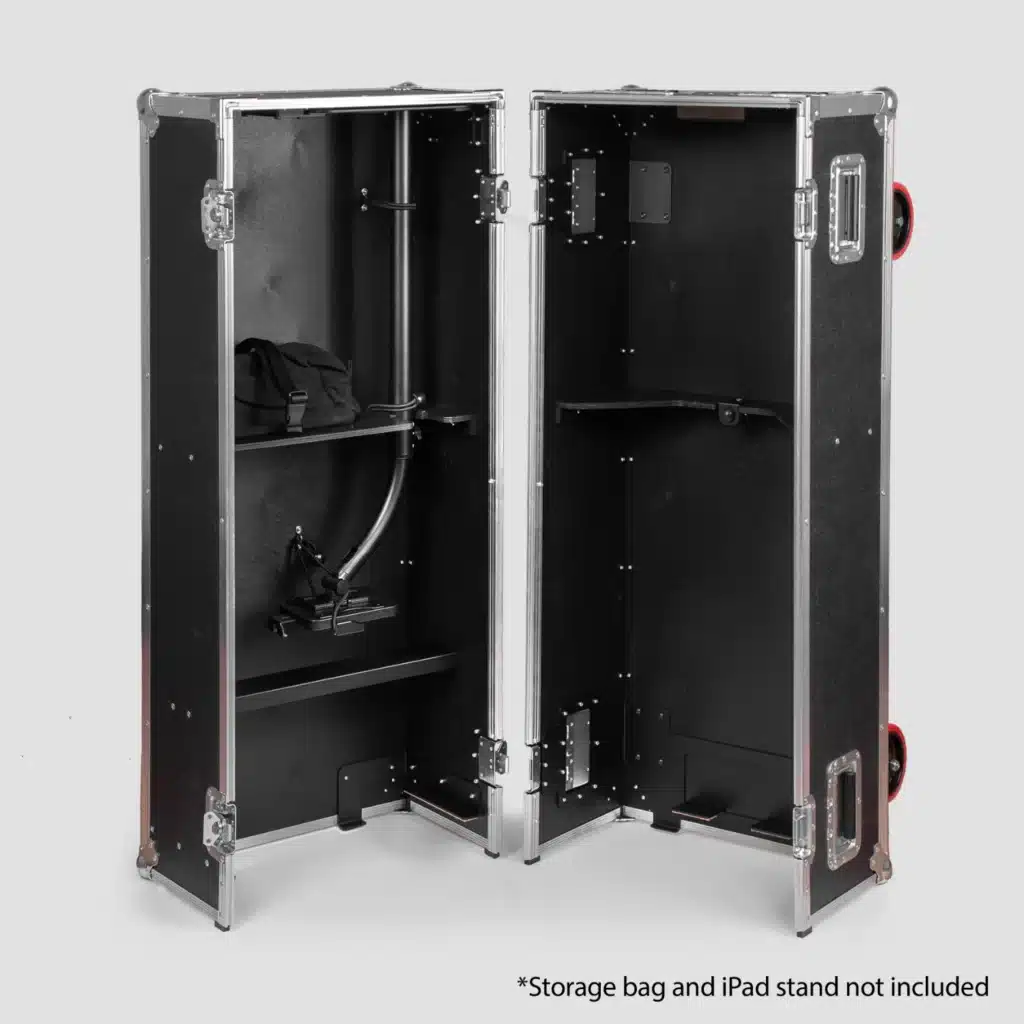 The Floor Model package includes everything in the Pro Package plus the second USB hub to support a wired sharing station as well as a tablet stand and storage bag, both of which store in the road case.