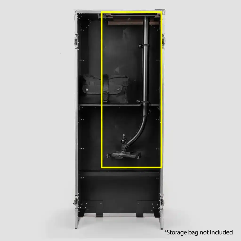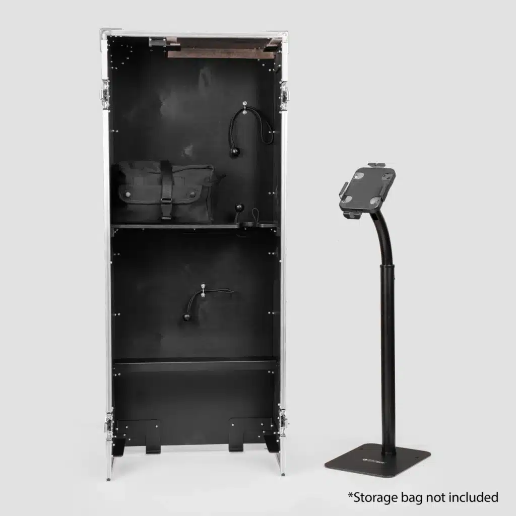 Adjustable tablet stand that fits in the OrcaVue Glambot road case for the ultimate in portability. Note, if the case did not come with a tablet stand, you need the Tablet Stand Kit, which includes the hardware to adapt the case for use with the stand. Only compatible with v2.0 cases.